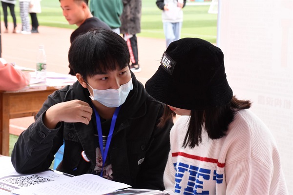 本网讯(记者 向春霞 张筱玉/文 张莹/图)为向社会工作者协会注入新鲜血液,确保我院社会工作者协会正常运行,10月10日起,我院社会工作者协会在民族体育场展开为期两天的社团招新工作。