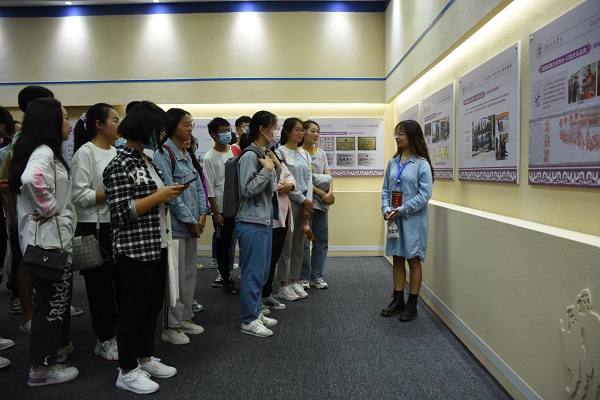 本网讯(记者 代梅/文 李俊良/图)为使我院新生了解学校发展历史,促进其对学校的认识,9月19日,团总支社会实践与志愿者工作部在行政楼办学成果展示厅举行校史馆参观活动。此次活动由教育学刘思佳担任讲解员,我院全体大一新生参与活动。