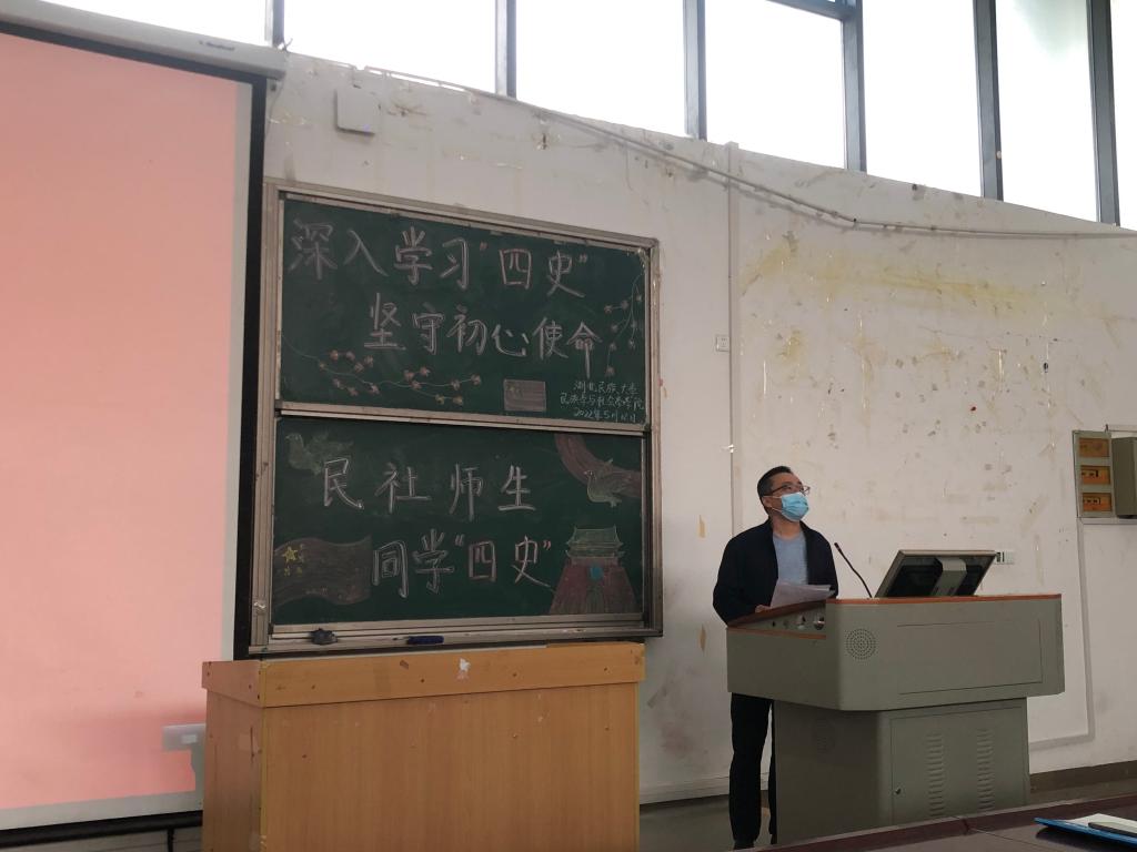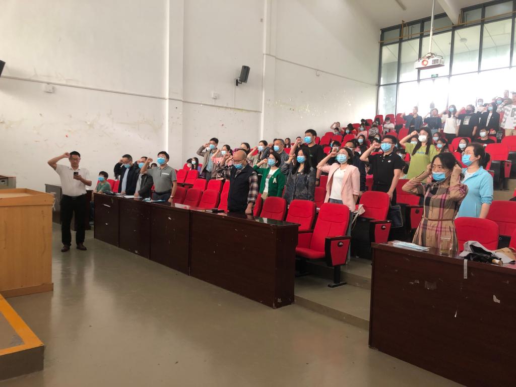 据悉,本次“四史”宣讲活动是我院教工党支部、研究生党支部和本科生党支部的主题党日特色实践活动内容,在本次宣讲活动之前三个支部一起开展了主题党日活动,我院党总支书记曹召胜组织全体党员重温入党誓词。