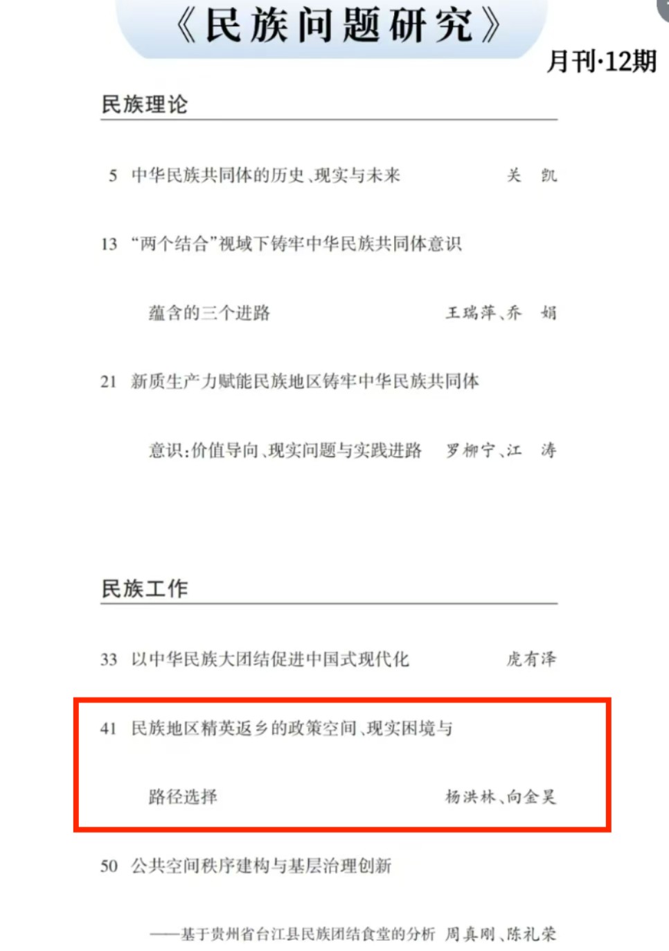 (本网讯 黄俊/文)近日,我院杨洪林教授发表在《Beat365唯一官方网站学报(哲学社会科学版)》2024年第4期的学术论文《民族地区精英返乡的政策空间、现实困境与路径选择》,被中国人民大学复印报刊资料《民族问题研究》2024年第12期全文转载。