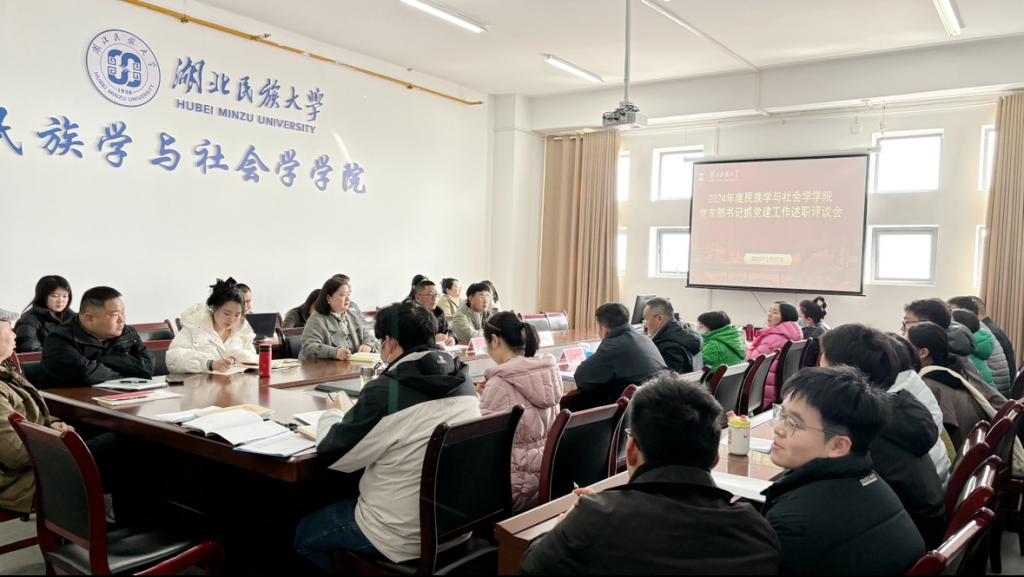 (本网讯 黄俊/文 黄俊/图)2月27日下午,我院于5B1205会议室召开党员大会,进行2024年度党支部书记抓党建工作述职评议,我院社会学系教工党支部、中华民族共同体概论课程建设组教工党支部、研究生党支部、本科生党支部全体党员参加了会议,会议由党总支书记曹召胜同志主持。