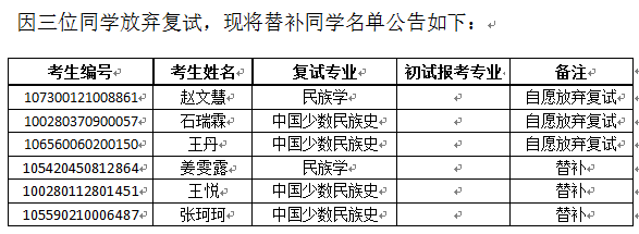 Beat365唯一官方网站民族学与社会学学院2020年硕士研究生招生复试名单(替补)