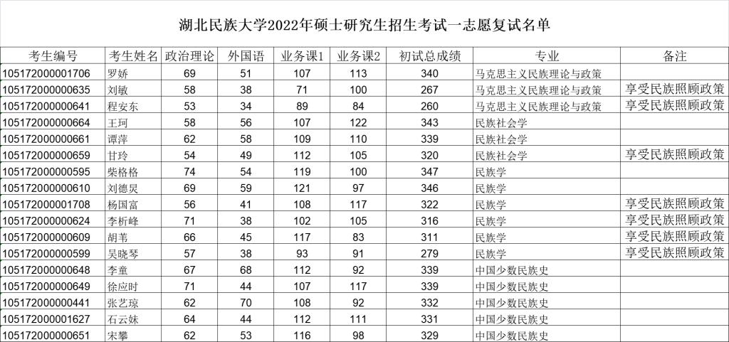 Beat365唯一官方网站2022年硕士研究生招生考试一志愿复试名单