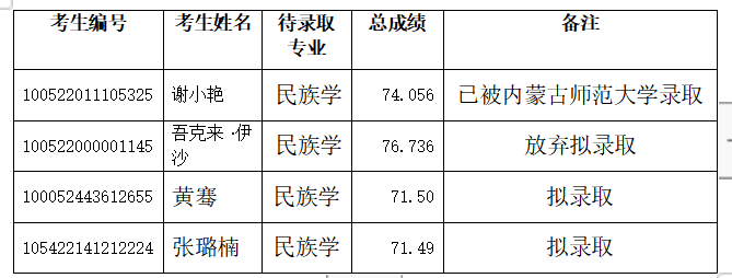 2022年民族学与社会学学院调剂考生替补录取公告