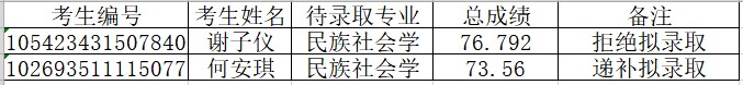 2023年民族学与社会学学院第二轮调剂考生递补录取公告