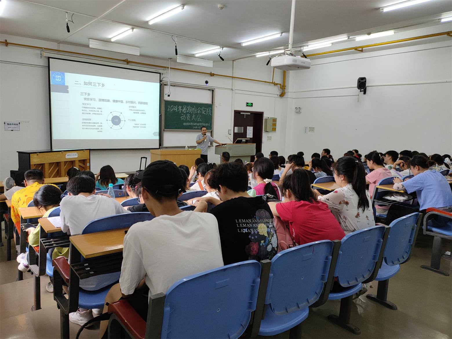 本网讯(记者 周树洋 薛郁竹/文 刘睿 肖欣/图 )为深入贯彻学习党的十九大会议精神,引领广大青年学生投身社会实践,6月17日,我院在修远楼5A107教室召开2021年暑期社会实践动员大会。我院周书刚老师,团总支书记熊霞老师,学生科顿山老师,往届暑期社会实践优秀学生代表何套、肖洪应邀出席本次活动,我院全体大一大二学生参加本次动员大会。
