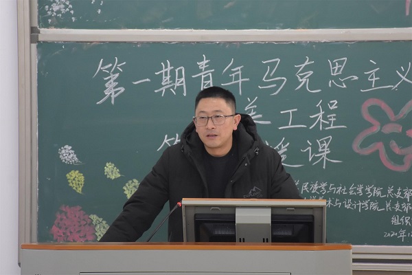 本网讯(见习记者 周树洋 张梦婷/文 刘睿 余喆/图)为提高我院学生思想水平和政治觉悟,完善学生骨干队伍建设,12月6日,我院于修远楼5A-202教室举办以“青春正好劳筋骨,圆梦更须加油干”为主题的第一期青年马克思主义者培训班第四次授课活动,我院党总支书记曹召胜老师应邀出席并担任主讲人,第一期青年马克思主义者培训班全体学员参与聆听。