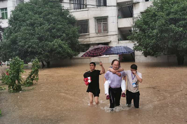 汛情就是命令,学校党员干部闻讯而动、向险而行、冲锋在前。17日下午,学校党员干部在栖凤社区龙洞河沿线的舞阳南区6、7、8栋逐户开展摸排和劝说工作,紧急疏散被困群众50余名。18日、19日,学校下沉桂花园社区的党员干部积极响应州委组织部、州直机关工委参与防汛救灾工作的部署,拿起铁锹、扫帚,紧急支援亲水走廊、九立方、市体育馆、机场路社区、栖凤社区、官坡社区等地的清淤工作。同时,学校党员干部还在栖凤社区龙洞河沿线开展巡河查堤、受灾统计、应急值守等工作。