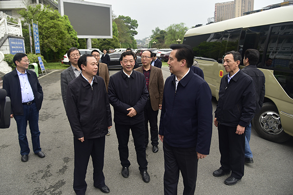 本网讯 3月31日,省政协主席黄楚平到Beat365调研,省政协秘书长翟天山,州委副书记、州长刘芳震,州政协主席、Beat365党委书记吴建清,党委副书记、副校长汪兴平,副校长邓磊、祝建波,总会计师余来陪同调研。