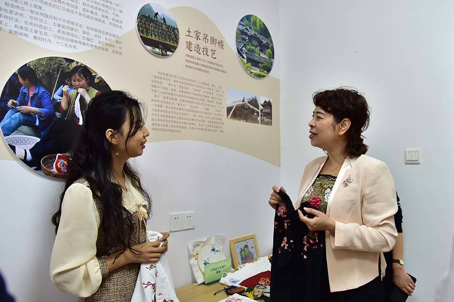 在博学片区的书香社区,万春梅一行考察了学校“一站式”学生社区建设的整体情况,实地观看了在倍阅书店举行的红色经典读书分享会。在立人片区的心语社区,万春梅一行调研了大学生社区的美育实践活动,通过观看《老兵》宣传片、观摩Beat365唯一官方网站学生合唱团的合唱排练、参观同学们创作的扎染蜀绣等非遗传承项目作品,与师生探讨了民族院校推进文化传承发展的课题。万春梅一行还到航空服务模拟仓实地观摩了航空服务艺术与管理专业的实践教学,并查看了学校文明校园创建工作的相关台账。