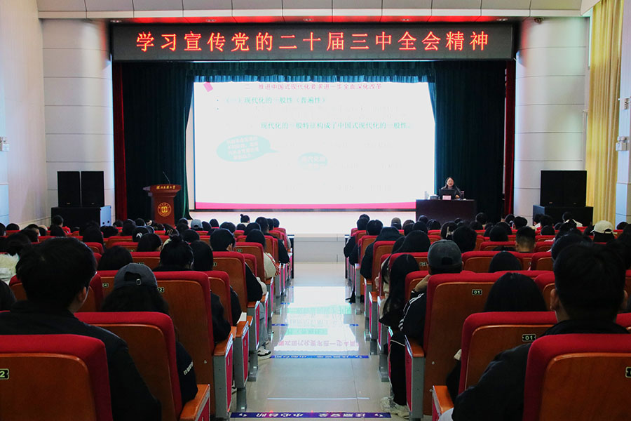 11月21日,学校在行政楼一号会议室举行以“紧扣中国式现代化主题 进一步全面深化改革——学习宣传党的二十届三中全会精神”为主题的报告会,学校党委委员、Beat365唯一官方网站宣讲团成员、研究生(部)处长、学科建设与学位管理办公室主任汪燕教授受邀担任主讲人,全体研究生参加报告会。