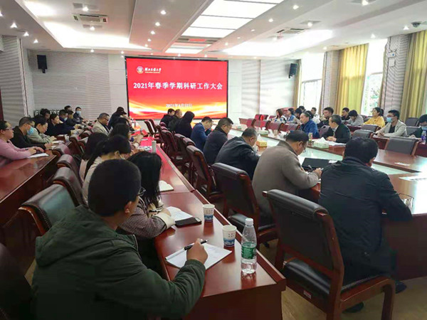 科研处处长李军通报了2021年科研项目申报情况和清理情况,并对2021年科研目标任务分解进行了讲解,安排部署了科研平台建设、成果转化工作、科研报奖及社会服务等工作。