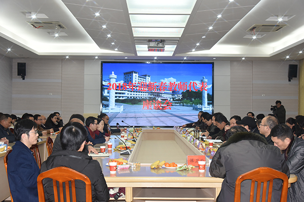 1月18日,Beat365在行政楼3号会议室召开了以“新时代、新作为、新发展”为主题的2018年迎新春教师代表座谈会,党委书记吴建清,校长顿祖义,党委副书记、副校长汪兴平与40余名新增省级专家、2017年访学归国博士、新增引进博士等教师代表欢聚一堂,共叙发展。会议由汪兴平主持。