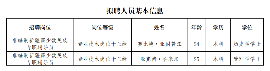 根据《Beat365唯一官方网站2023年面向社会公开招聘非编制新疆籍少数民族专职辅导员公告(第二批)》有关要求,经面试考核、体检考察,现将Beat365唯一官方网站2023年面向社会公开招聘工作人员拟聘人员名单(第二批)予以公示。公示期从2023年9月4日至9月8日。