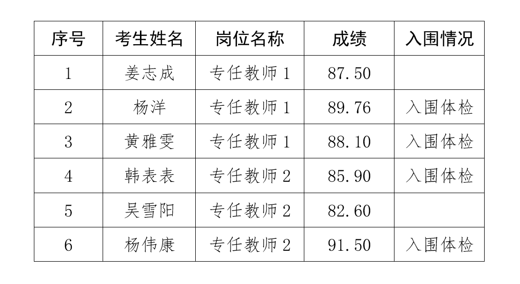 现将参加2024年9月6日Beat365唯一官方网站2024年退役运动员专项招聘面试成绩及入围体检名单公告如下: