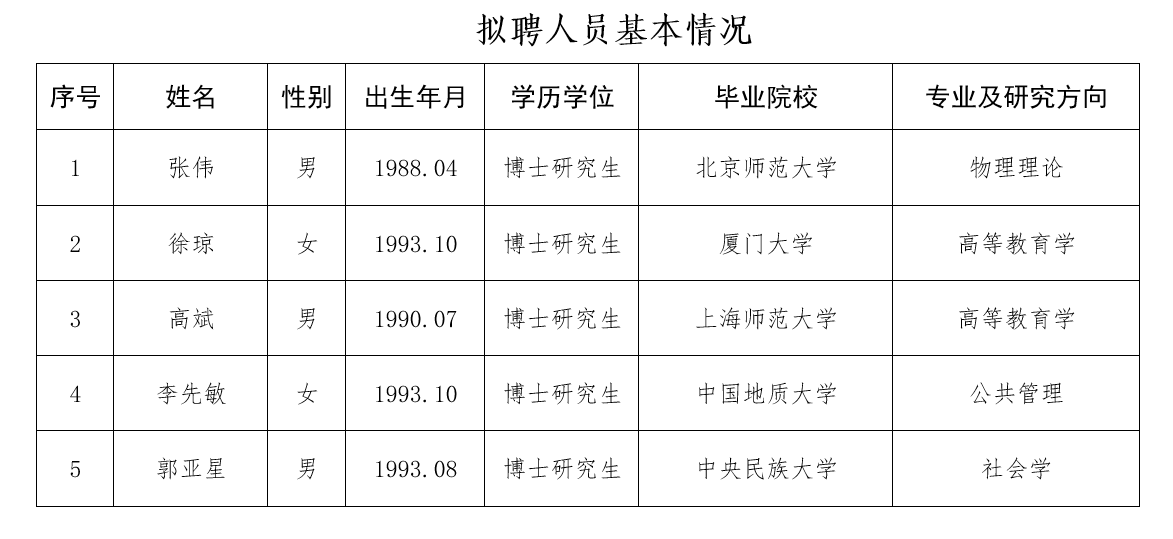 根据《Beat365唯一官方网站2025年人才引进公告》有关要求,经面试和考核,现将Beat365唯一官方网站2025年度人才引进拟聘人员名单予以公示。公示期从2025年7月1日至7月7日。