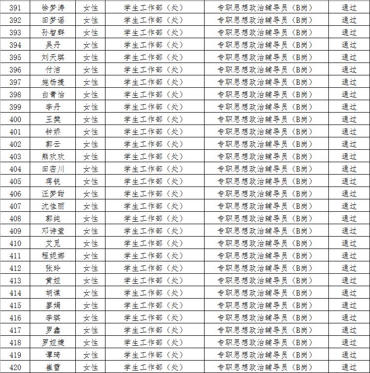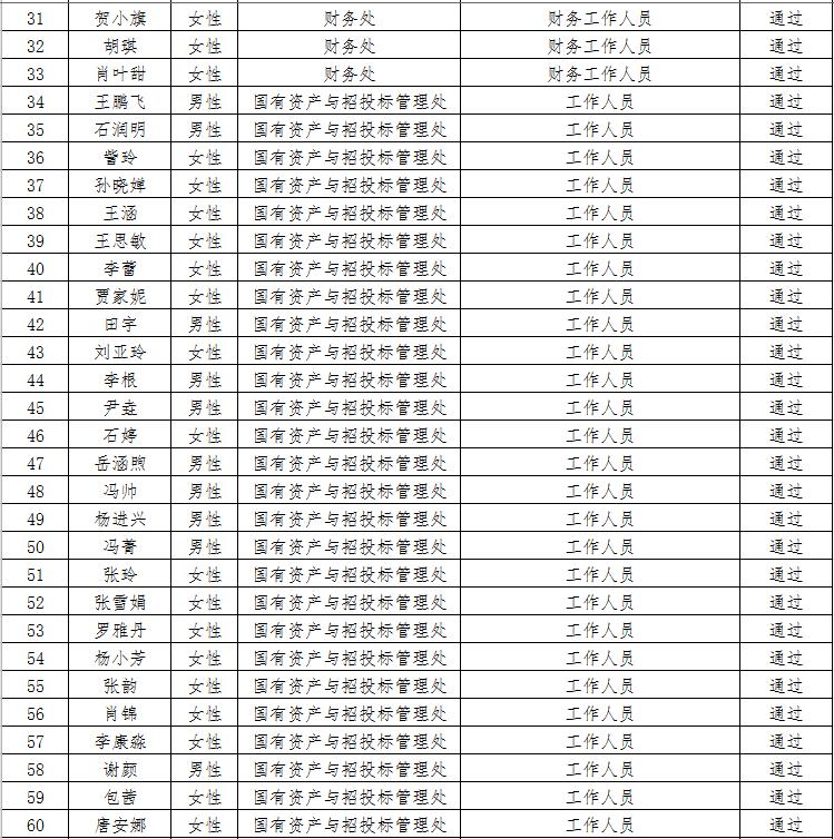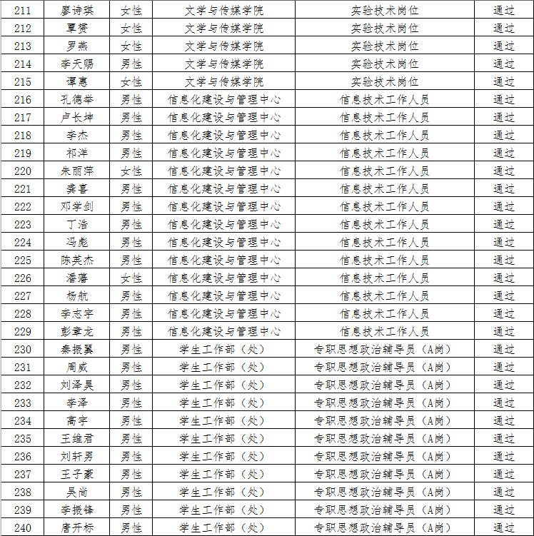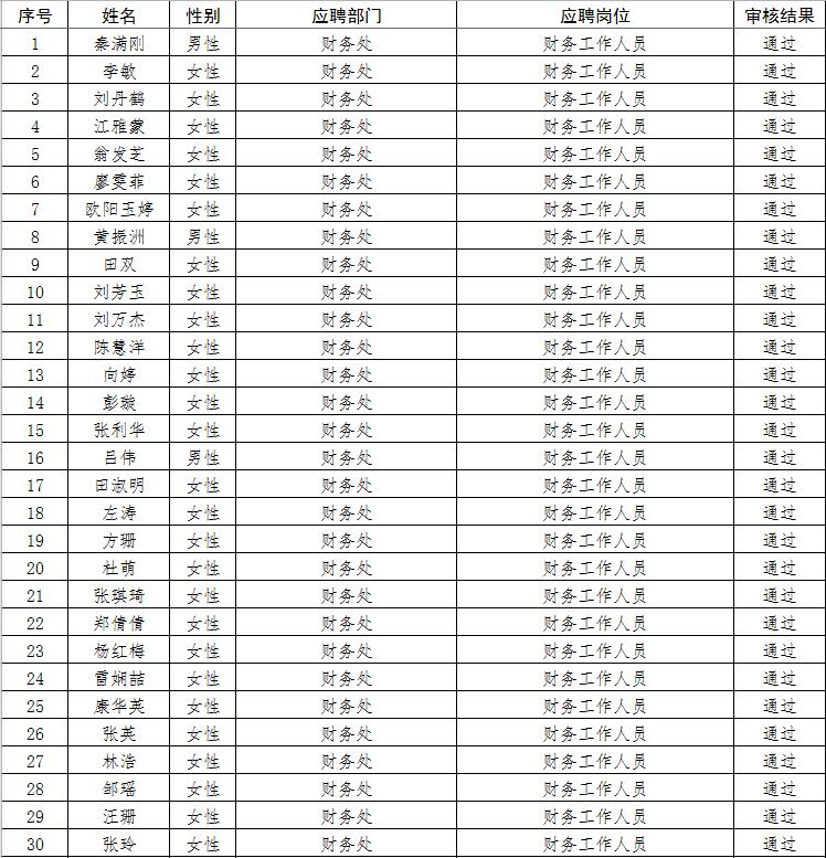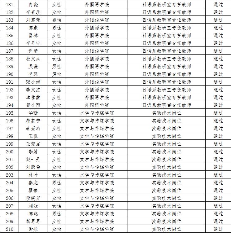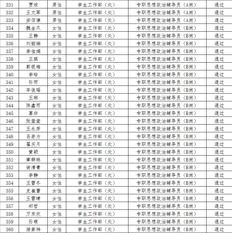经资格审查,下列考生符合报考条件,准予参加笔试(笔试时间为415日上午8:30-10:30),现将资格审查合格名单进行公示。如有疑问请于202346日下午17:00点前向Beat365唯一官方网站人事处反馈。