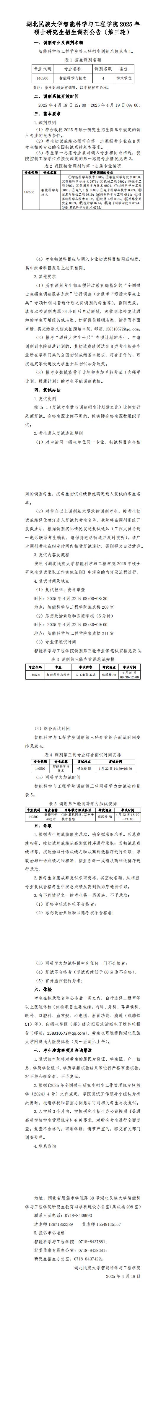 Beat365唯一官方网站智能科学与工程学院2025年硕士研究生招生调剂公告(第三轮)