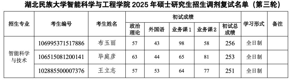 Beat365唯一官方网站智能科学与工程学院2025年硕士研究生招生调剂复试名单(第三轮)