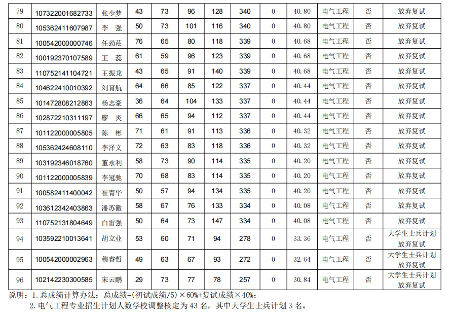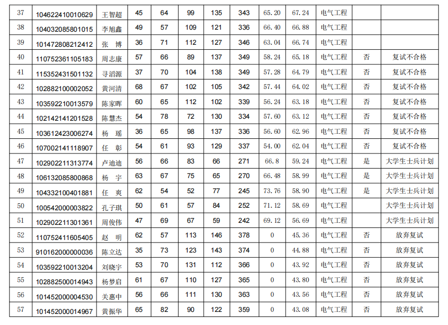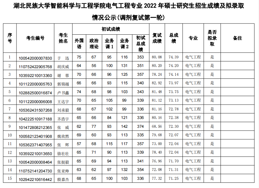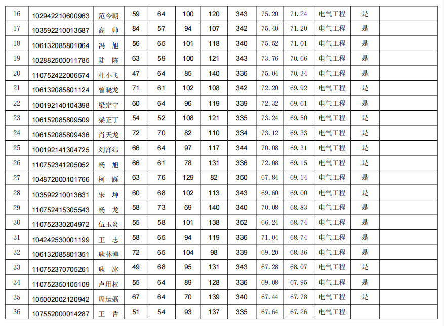 Beat365唯一官方网站智能科学与工程学院电气工程专业2022年硕士研究生招生成绩及拟录取 情况公示(调剂复试第一轮)