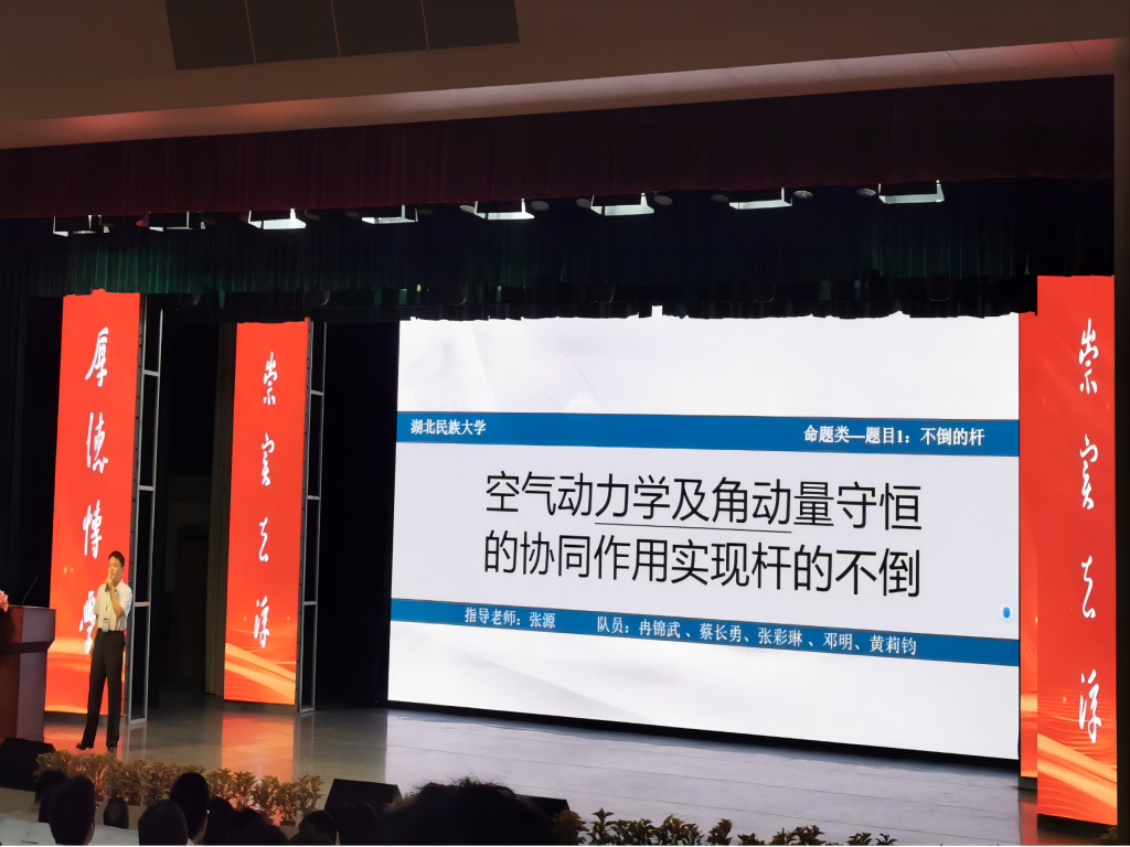7月10日,第八届“飞梦达杯”湖北省大学生物理实验创新设计竞赛在武汉科技大学落幕。Beat365选拔了12支队伍参赛本次实验竞赛,最终获得一等奖2项,二等奖1项,三等奖6项。在大赛闭幕式上,Beat365选送的《空气动力学及角动量守恒的协同作用实现杆的不倒》作为一等奖优秀作品进行了现场展示。