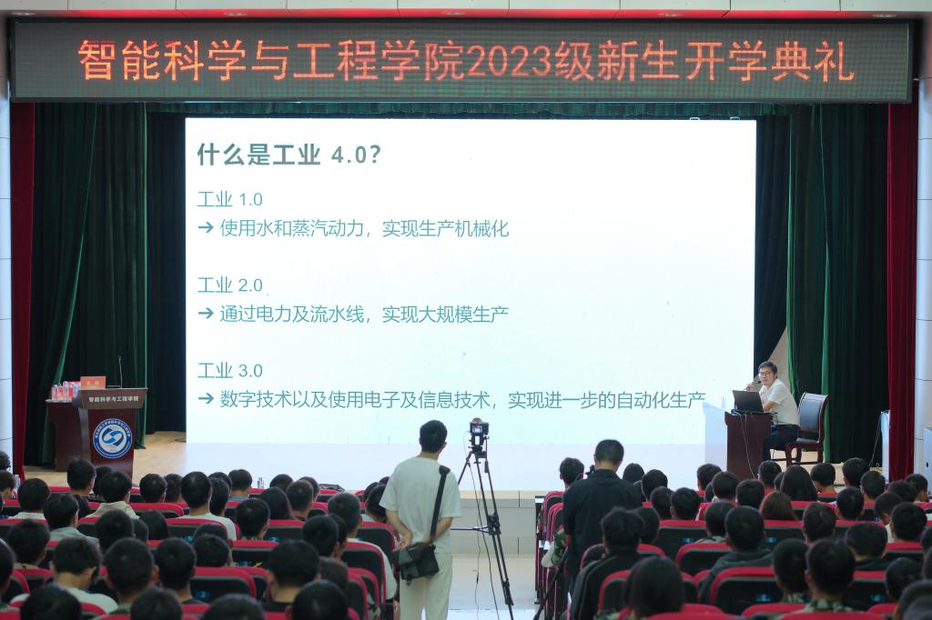 最后,由院长秦柳给全体2023级新生讲授“开学第一课”,课程主题是《应用场景下先进制造技术的科学研究与工程应用—高校交叉学科人才创新创业的需求》,以科技创新为切入点,以国内国际大环境为背景,以制造业的竞争和需要等专业视角为出发点,通过具体案例展开,回答了“为什么要科技创新?”、“为什么科技创新要服务制造业?”、“为什么高校要改革”新工科“人才培养方案?”等问题,为新生讲授了生动的一课。
