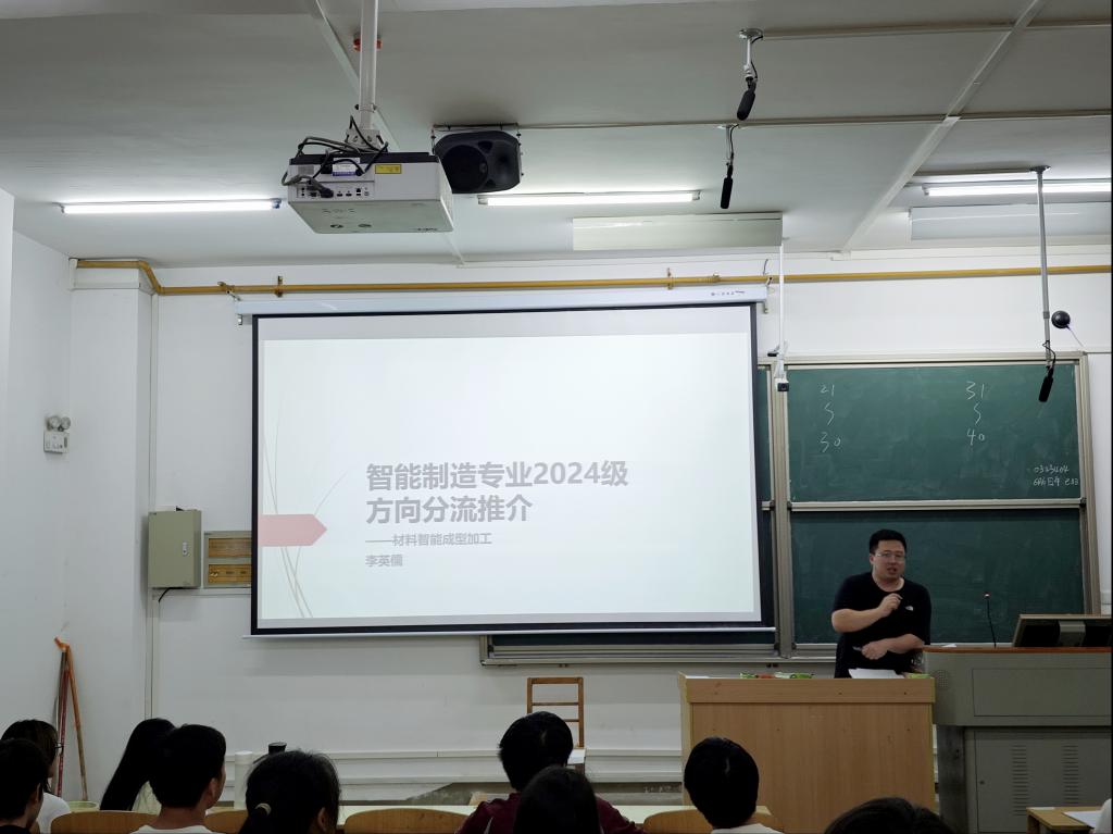 智能制造工程专业作为一门多学科交叉的新兴专业,近年来在国内高校中迅速兴起。其涵盖了自动化、计算机科学、机械工程等多个领域,旨在培养具备智能制造系统设计、开发与应用能力的专业人才。然而,随着行业对智能制造需求的不断深入,对材料科学与工程的要求也日益提高。因此,细分材料方向成为了该专业发展的必然趋势,根据本院的人才培养方案,本专业组织了专业分流推介会,本次推介会的主讲人是李英儒副教授。