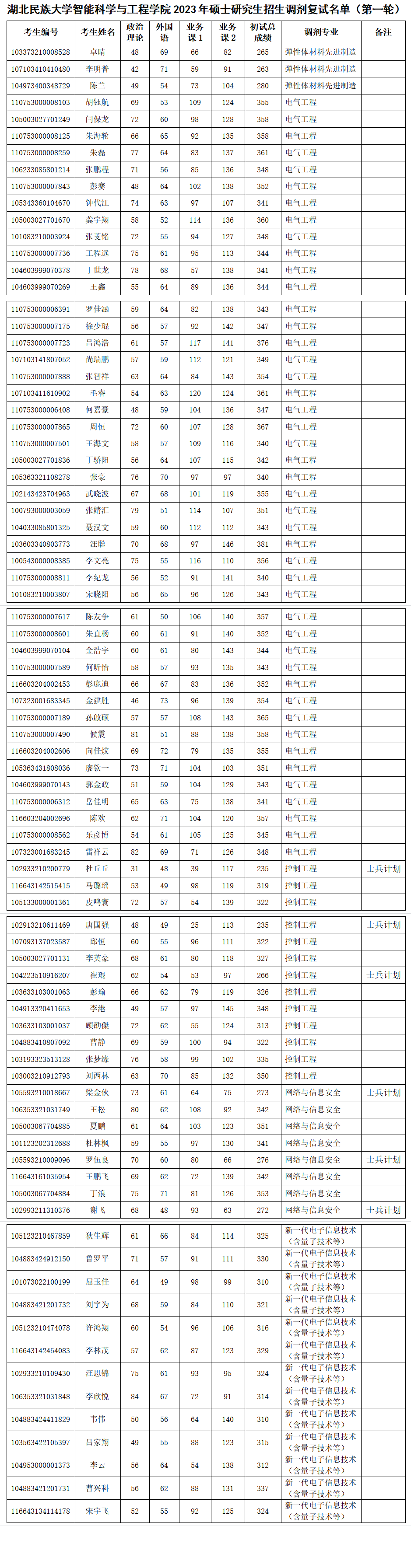 Beat365唯一官方网站智能科学与工程学院2023年硕士研究生招生调剂复试名单(第一轮)