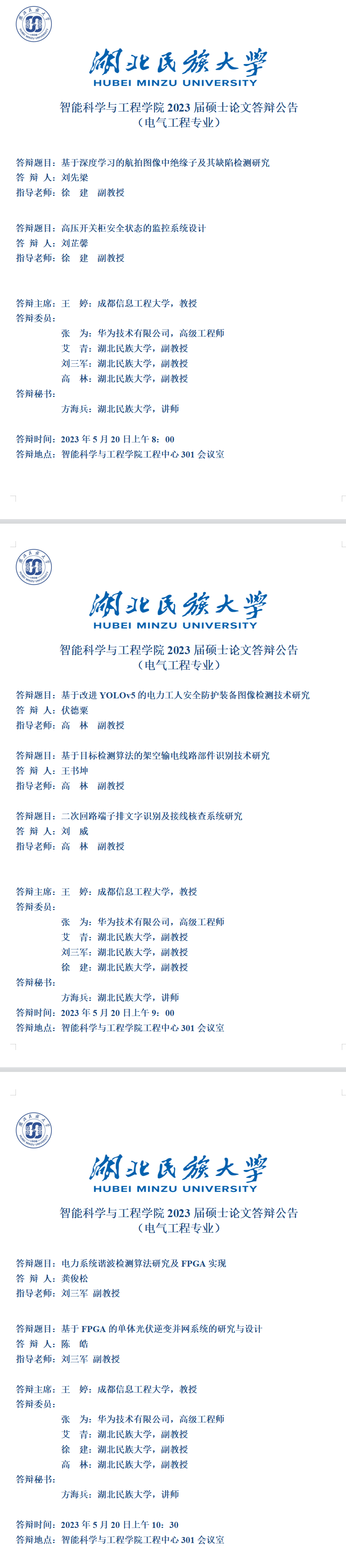 : 智能科学与工程学院2023届硕士学位论文答辩公告(三)