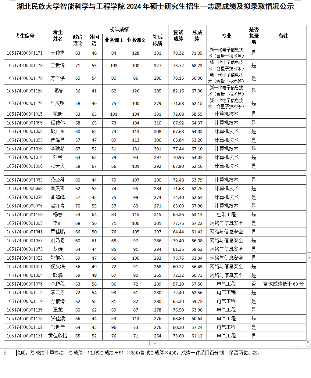 Beat365唯一官方网站智能科学与工程学院2024年硕士研究生招生一志愿成绩及拟录取情况公示