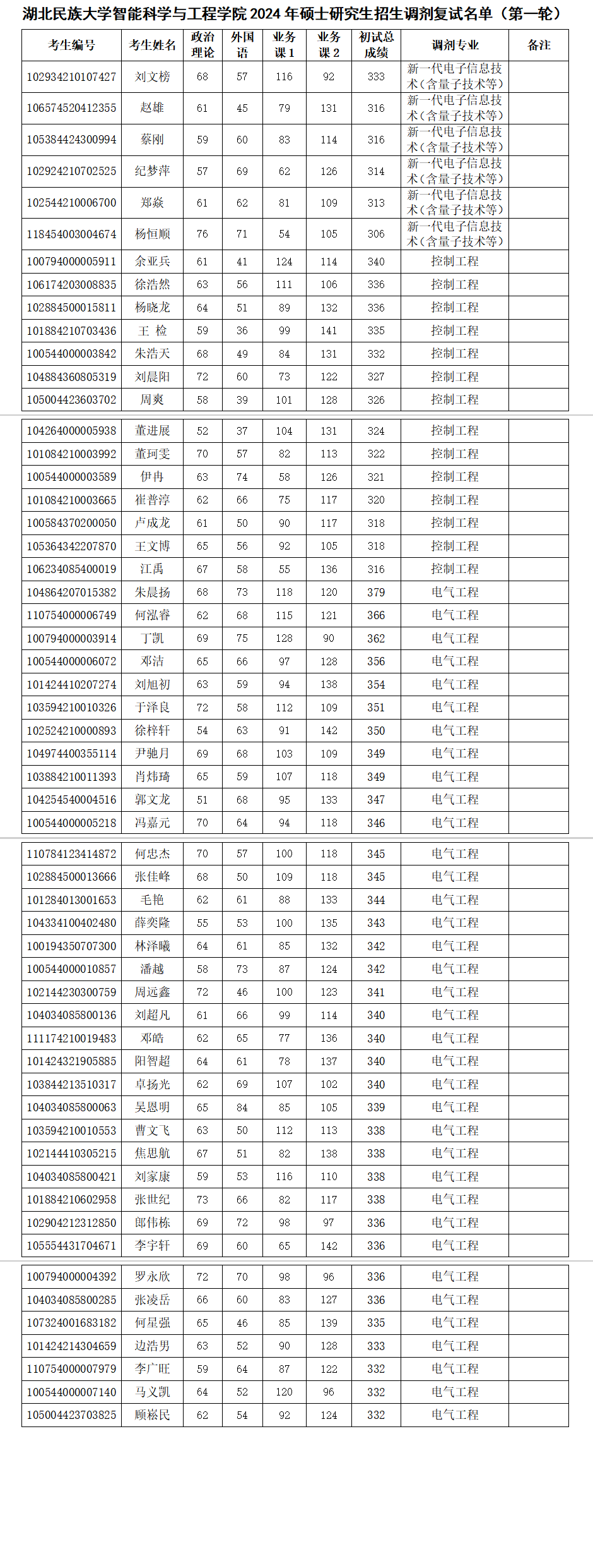 Beat365唯一官方网站智能科学与工程学院2024年硕士研究生招生调剂复试名单(第一轮)