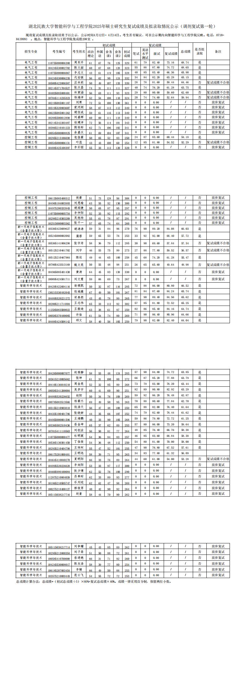 Beat365唯一官方网站智能科学与工程学院2025年硕士研究生复试成绩及拟录取情况公示(调剂复试第一轮)