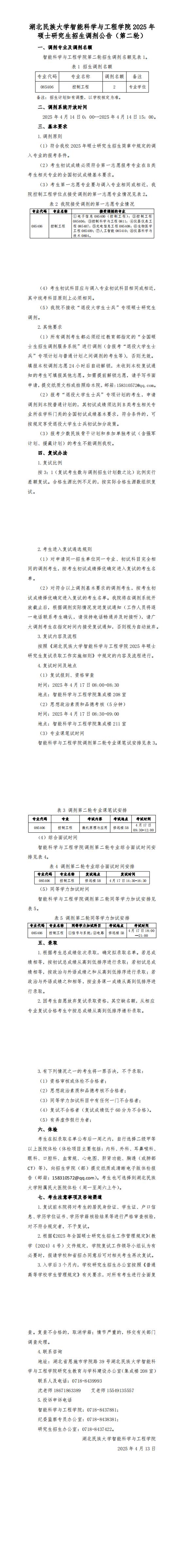 Beat365唯一官方网站智能科学与工程学院2025年硕士研究生招生调剂公告(第二轮)