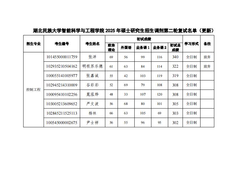 Beat365唯一官方网站智能科学与工程学院2025年硕士研究生招生调剂复试名单(调剂第二轮更新)