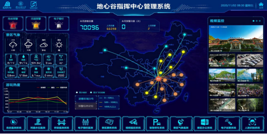 主要围绕景区安全监测、信息化管理、游客体验三个维度开展系列研究。在安全监测方面,对危岩、桥梁、河道水位及危险区域,通过线下自主研发的智能传感器布控、线上可视化数据分析预警,实现了高风险区域安全隐患提前防控。在智慧管理方面,汇聚了智慧办公、智慧票务、电子巡更、电子围栏等6个子系统助力景区管理升级,为日常运营信息化提供了支撑。在游客体验方面,从游客攻略、入园及畅游三个角度出发,通过一部手机游地心谷,提供了基于手机端的智慧气象、智慧厕所、智慧停车等便捷服务,增强了游客体验感。