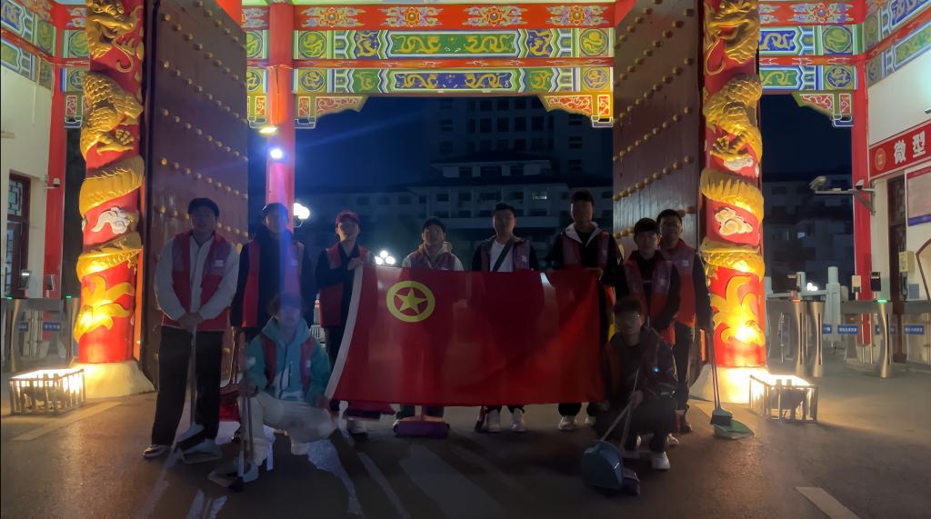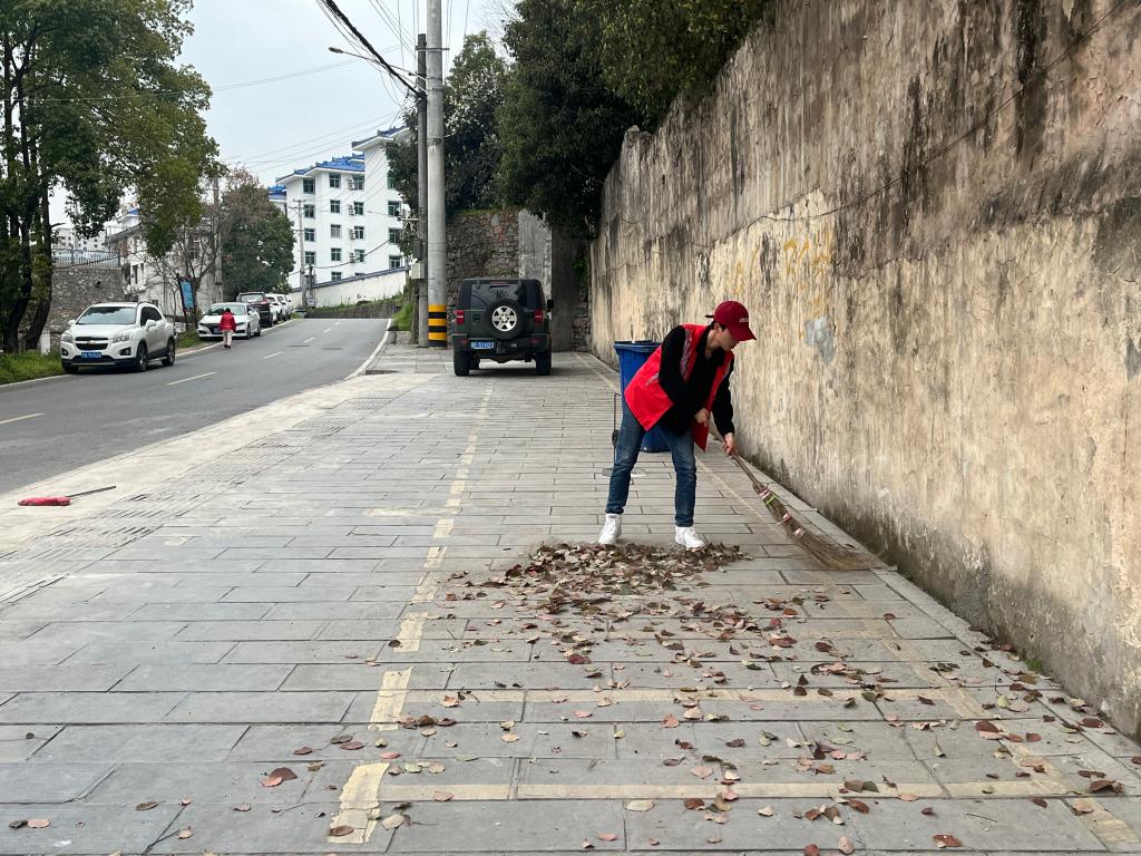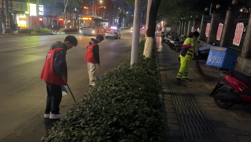 从6:00到10:30,志愿者们分为5组,分别与负责不同街道的环卫工人一起开展清洁任务。清晨的街道上,落叶与垃圾遍布,志愿者们手持扫帚,弯腰捡拾,一点点清扫街道的每一个角落。