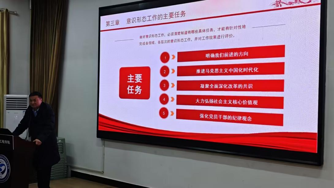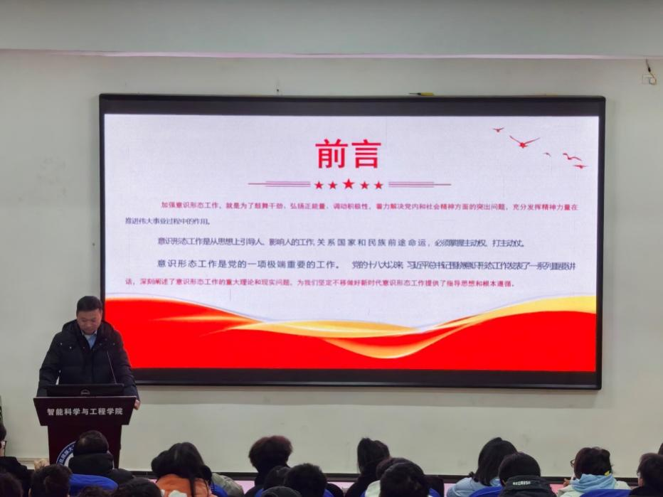 2024年12月15日20:20,我院院长陈世强在集成楼213为青马班学员授课,授课主题为“坚定不移做好新时代意识形态工作”,我院学生会、团总支、以及各班团干部参加此次培训班。