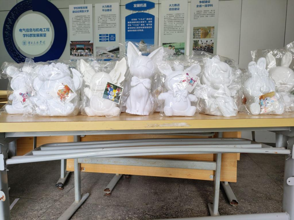活动现场气氛热烈而有序。洁白的石膏娃娃在桌上整齐排列,等待着同学们赋予它们新的生命。活动参与者们展现出各自独特的技巧,蘸、转、抹、勾,不断绘画着,手中的画笔灵动又流畅,不一会儿,一个个色彩斑斓、生动形象的石膏作品便呈现在眼前。
