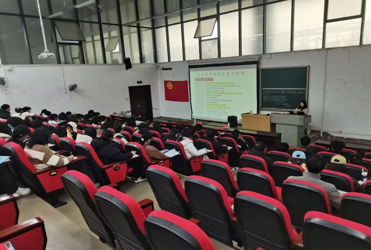 随后,课程进入理论学习环节研读《论党的青年工作》。授课老师阐述党对青年工作的战略部署,强调新时代青年在各领域的重要使命,激励团员青年紧跟党的指引,在国家发展中勇挑重担。 随后,课程深入到筑牢中华民族共同体意识专题。老师从历史、文化、社会等多维度展开,深刻阐释了中华民族共同体意识是国家统一之基、民族团结之本、精神力量之魂。鼓励团员青年尊重不同民族的文化习俗,积极参与各民族交流活动,像爱护自己的眼睛一样爱护民族团结,在生活与学习中成为维护民族团结的坚固桥梁。而共青团知识讲解环节同样精彩。老师以共青团在新民主主义革命时期诞生为起点,讲述共青团如何紧跟党的步伐,在社会主义建设、改革开放以及新时代发展中,组织青年、引导青年、服务青年,成为党的得力助手和可靠后备军。