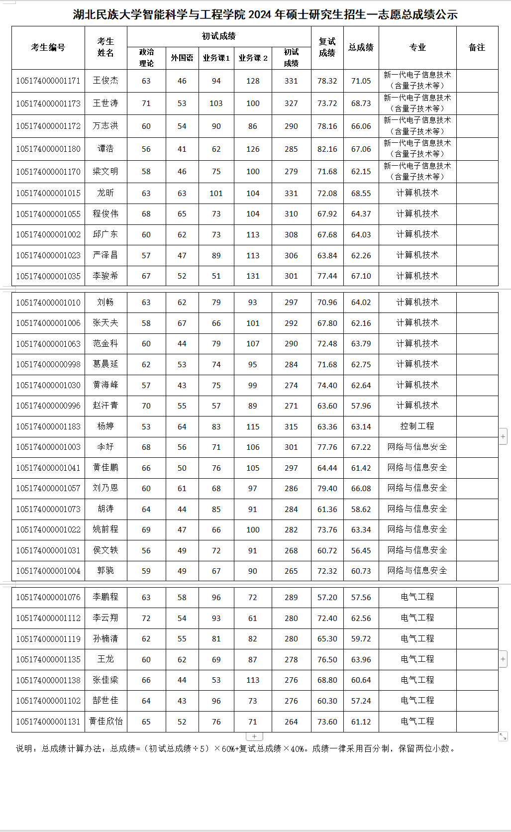 Beat365唯一官方网站智能科学与工程学院2024年硕士研究生招生一志愿总成绩公示