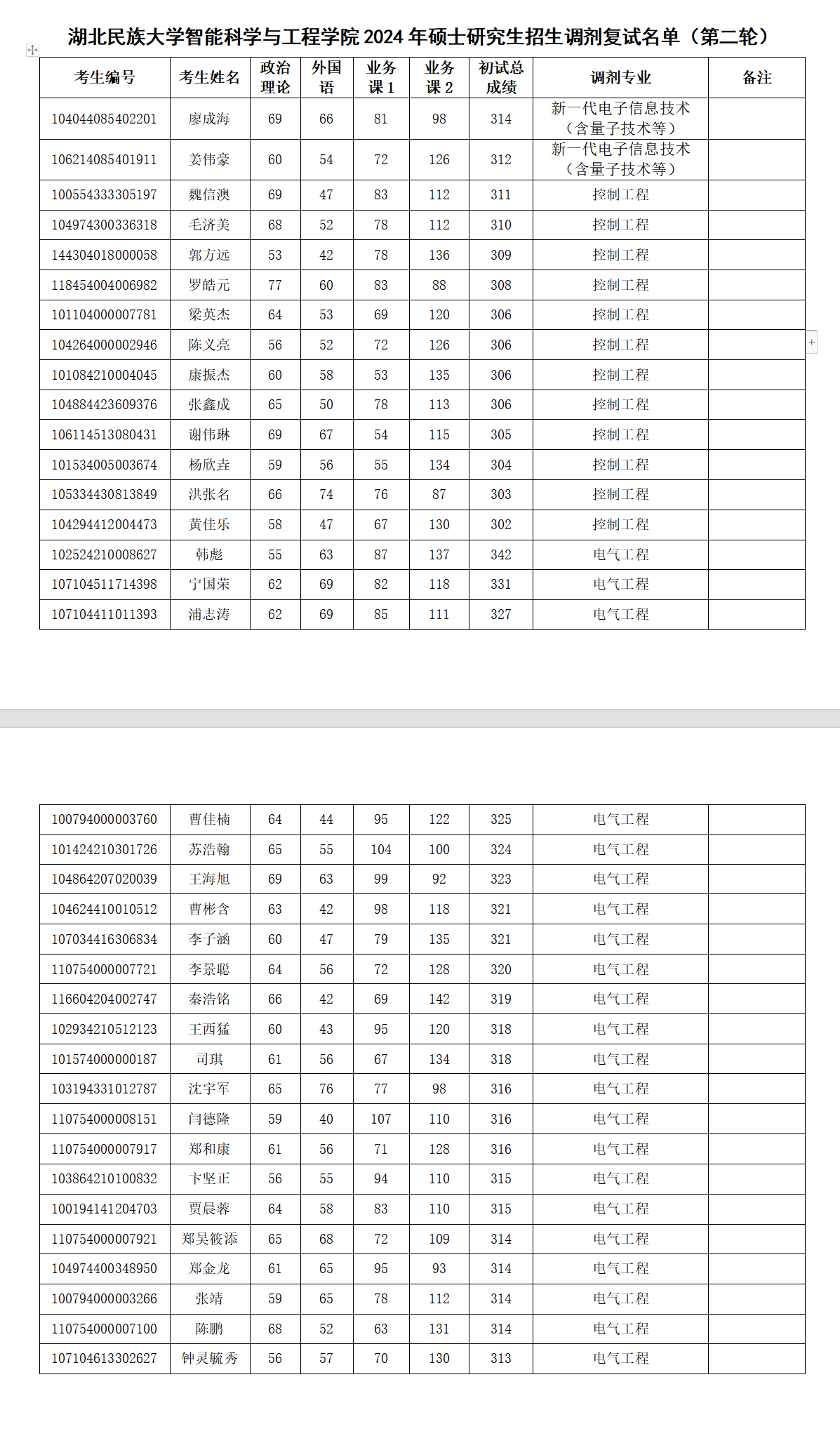 Beat365唯一官方网站智能科学与工程学院2024年硕士研究生招生调剂复试名单(第二轮)