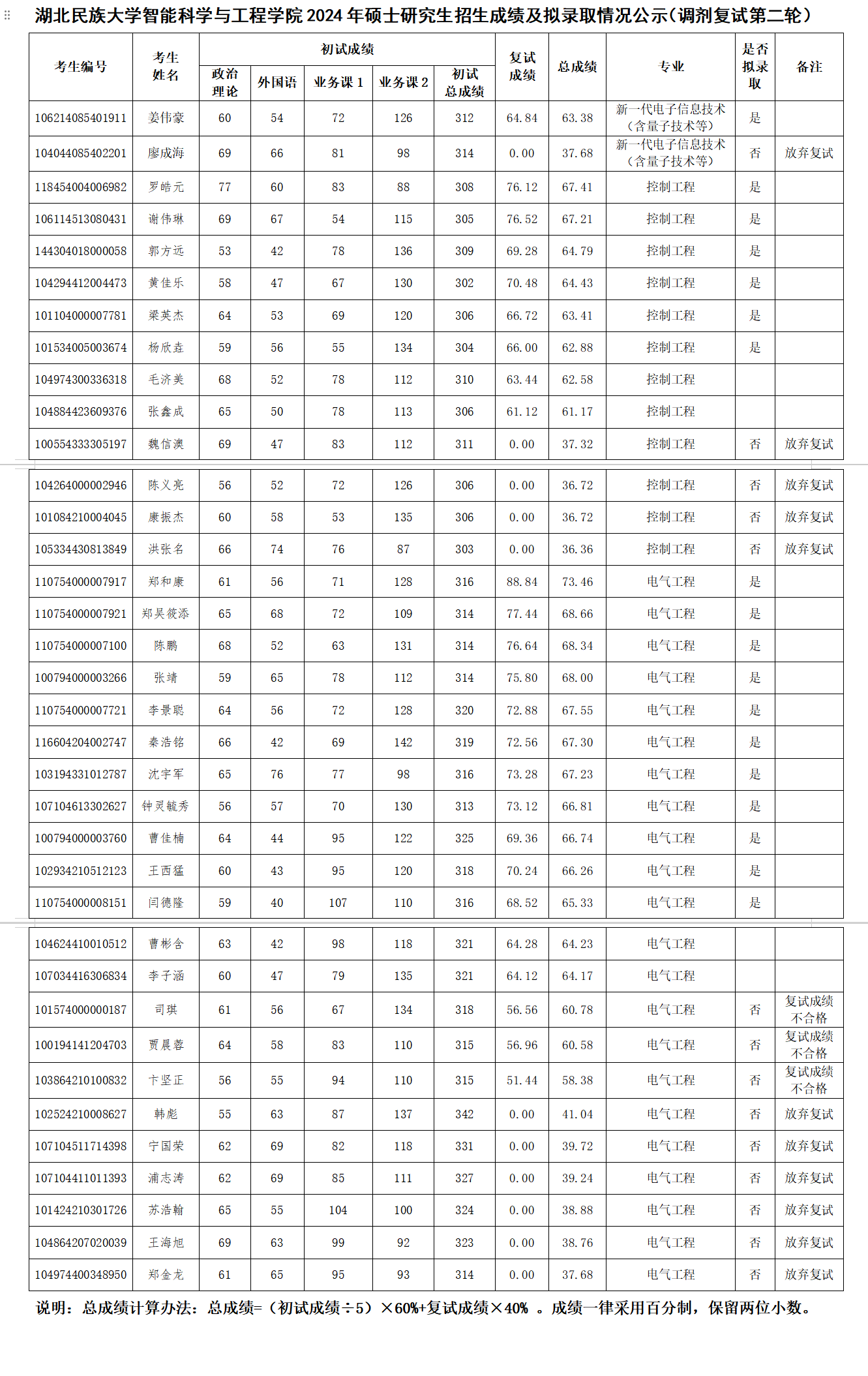 Beat365唯一官方网站智能科学与工程学院2024年硕士研究生招生成绩及拟录取情况公示(调剂复试第二轮)
