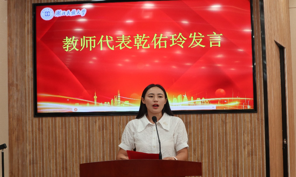 体育学院教师代表乾佑玲则建议新生们要心存感恩、胸怀大志、脚踏实地、坚韧不拔,在大学中体验学习的快乐,在探索与挑战中不断成长!