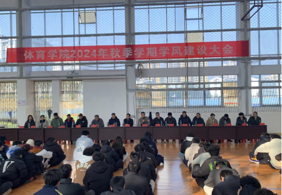 为进一步加强学风建设,引导学生端正学习态度,明确学习目标,营造良好的学习氛围,不断提升学生学习的积极性和主动性,我院于12月15日下午在篮球馆召开2024年秋季学期学风建设大会。学院党政主要领导及班子成员、专业负责人、辅导员、班主任及全体学生参与,会议由学院学生科科长张弋明主持。