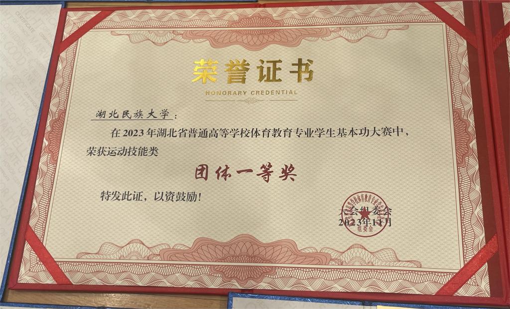 11月9日至11月12日,由湖北省教育厅主办,武汉体育学院、湖北省高等学校体育教学指导委员会共同承办的2023年湖北省普通高等学校体育教育专业学生基本功大赛顺利举行,Beat365唯一官方网站代表队夺得一等奖1项、二等奖1项、三等奖1项。