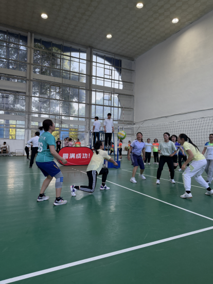 在陆地龙舟与踢毽球接力赛中,我院教职工展现出良好风采。陆地龙舟比赛时,他们步伐整齐划一,口号响亮有力,以默契的协作和十足的冲劲拿下冠军。踢毽球接力时,老师们脚法娴熟,毽子在他们脚尖轻巧起落,传递迅速精准。凭借完美配合与精湛技巧,再度斩获第一名,团队配合精神在此刻得到更好诠释。