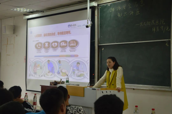 (通讯员 袁长麟 杨雨垚 图片/蒋航 杨丽)为了加强安全突发事故救生知识教育,提高在紧急情况时的救生能力,5月13日下午邀请民大附属医院肾病内科的谭伟宁、张明霞,民大附属医院急诊科李明春教授、医生胡筱、张荣、谭靖分别在修远楼、德智楼9A209对师生进行游泳安全应急知识讲座,对体育学院全体师生进行救生培训。