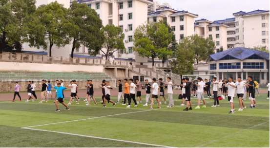 按照学院计划,早上6:40,迎着朝升的太阳,全体学生来到操场前集合点名,分管的学生干部做好考勤工作。早操活动结合第九套广播体操、慢跑等多种形式进行。随着口号声响起,以班级为单位,各班同学都以自己最饱满的热情投入了早操活动,充分展现了当代大学生蓬勃的青春活力。