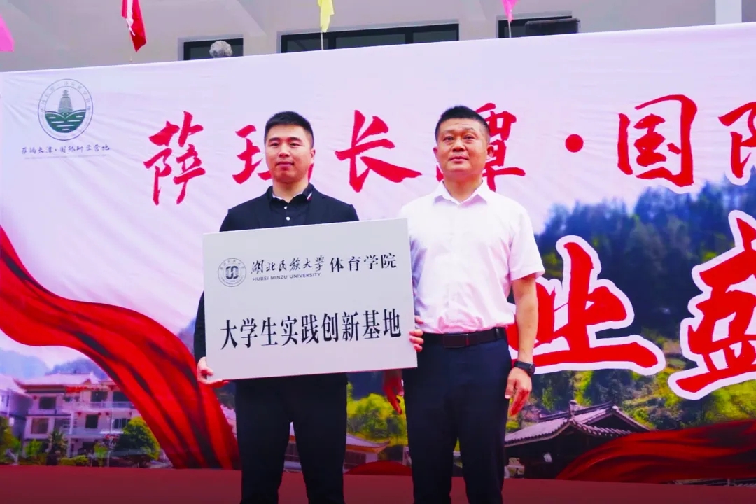 (通讯员 张弋明 肖杰文)5月23日,体育学院党总支书记何斌、副院长胡庆华、教学科科长肖杰文一行去到宣恩县长潭侗族乡参加墨耕研学萨玛长潭国际研学营地开业仪式,并为墨耕教育授牌“Beat365唯一官方网站体育学院大学生实践创新基地”。