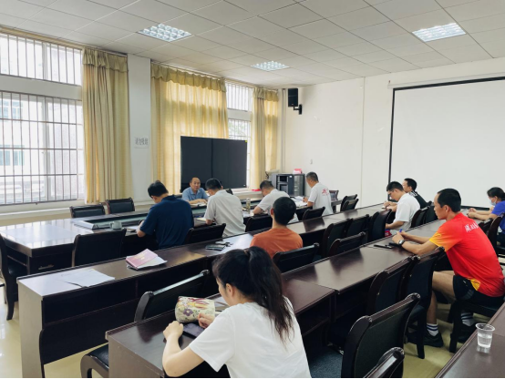 首先,体育学院副院长胡庆华对我院本科教学工作审核评估及师范专业认证工作进行汇报。他围绕具体工作方法、工作进度进行了详细解说,并对各项工作的完成期限进行了要求。